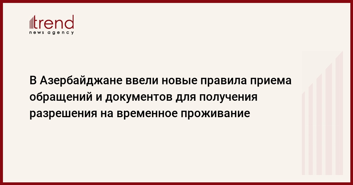 БАКУ /Trend/ - В Азербайджане внедряются новые правила по приему обращений и документов для получения (продления) разрешения на временное проживание, сообщает в среду Trend, со ссылкой на Государственную миграционную службу Азербайджана.