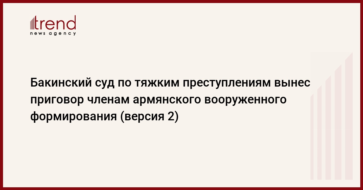 Следствие по уголовному делу в отношении членов незаконного вооруженного формирования Авакяна Грача Арзумановича, Серобяна Гегама Самвеловича и других, всего 14 человек, обвиняемых по ст. 214.2.1, 214.2.3 (терроризм, совершенный группой лиц по предварительному сговору, организованной группой или преступным объединением (преступной организацией) с применением огнестрельного оружия и предметов, используемых в качестве оружия), 228.3 (незаконное приобретение, передача, сбыт, хранение, перевозка или ношение оружия, комплектующих деталей к нему, боеприпасов, взрывчатых веществ и взрывных устройств, совершенные организованной группой), 279.2 (нападение на предприятия, учреждения, организации либо на отдельных лиц в составе непредусмотренных законодательством вооруженных формирований или групп) и 318.2 (незаконное пересечение государственной границы Азербайджана группой лиц по предварительному сговору или организованной группой) Уголовного кодекса Азербайджанской Республики было завершено и вместе с обвинительным заключением, утвержденным заместителем Генерального прокурора Азербайджана, направлено для рассмотрения в суд.