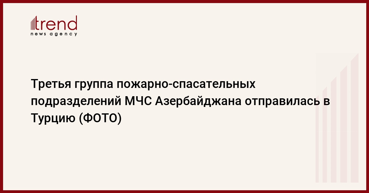 БАКУ /Trend/ - Третья группа пожарно-спасательных подразделений министерства по чрезвычайным ситуациям Азербайджана отправилась в Турцию.