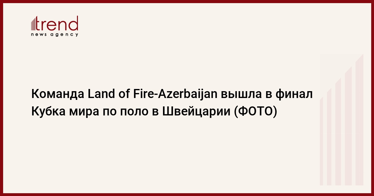 БАКУ /Trend/ - Команда Land of Fire-Azerbaijan вышла в финал 37-го Кубка мира по поло в швейцарском городе Санкт-Мориц.