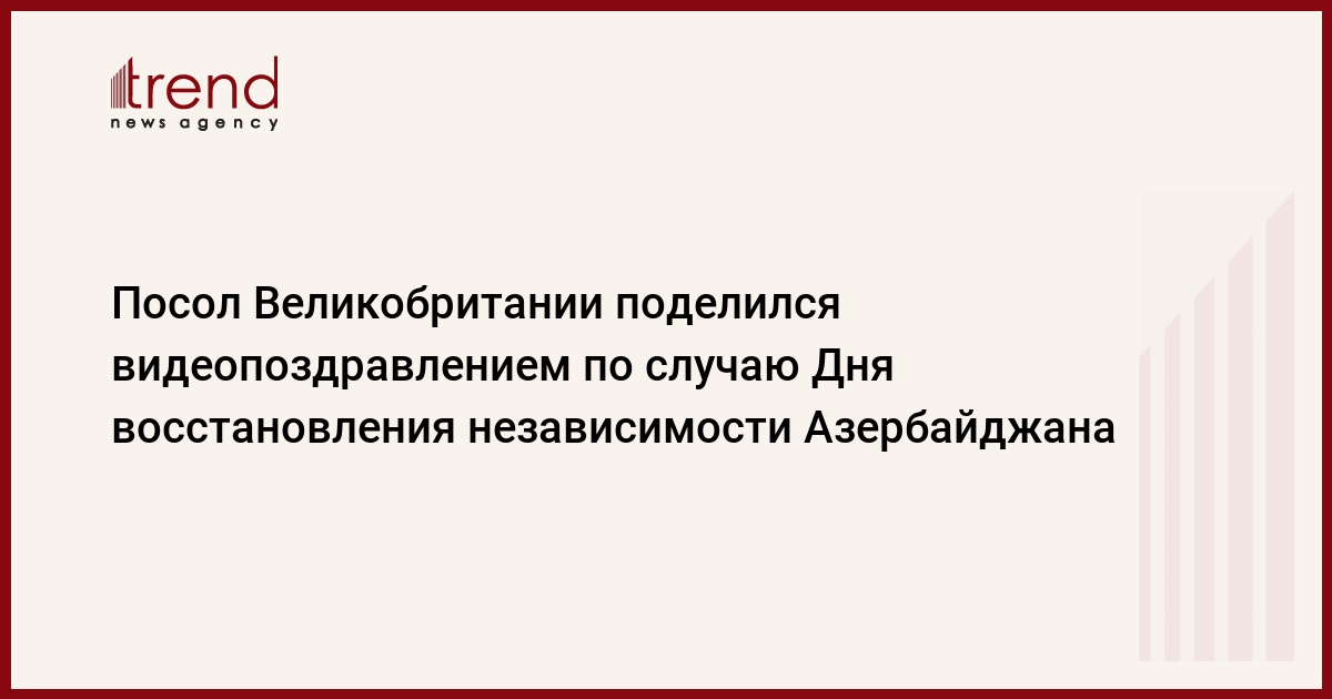 БАКУ /Trend/ - Новоназначенный посол Великобритании в Азербайджане Фергус Олд поделился видеопоздравлением по случаю Дня восстановления государственной независимости Азербайджана, сообщает Trend во вторник со ссылкой на публикацию дипломата в Twitter.