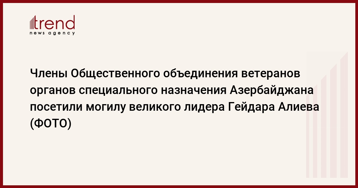 БАКУ /Trend/ - По случаю годовщины смерти общенационального лидера Гейдара Алиева, имеющего бесценные заслуги перед нашей страной и народом, члены Общественного объединения ветеранов органов специального назначения «Альянс» посетили могилу великого лидера Гейдара Алиева на Аллее почетного захоронения.