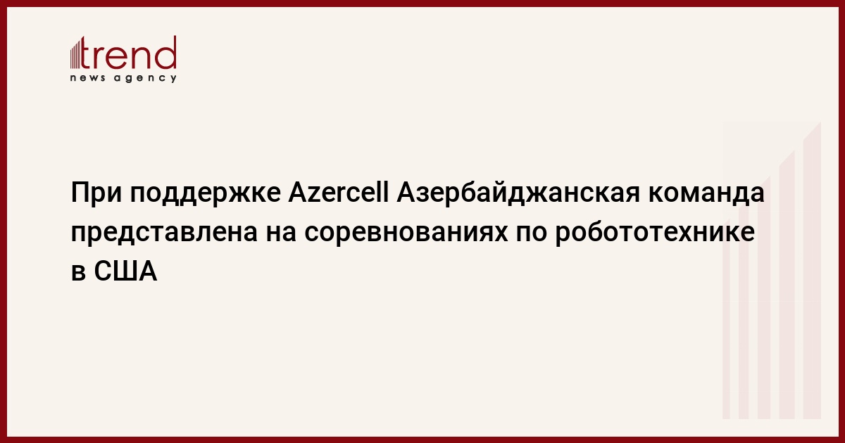 «Azercell Teleсom» желает успехов нашей команде юных робототехников в конкурсе «FIRST Robotics Competition», который способствует развитию в школьниках столь важных для будущих ученых и инженеров навыков, как критическое мышление и нестандартный подход к решению задач, а также опыта командной работы!