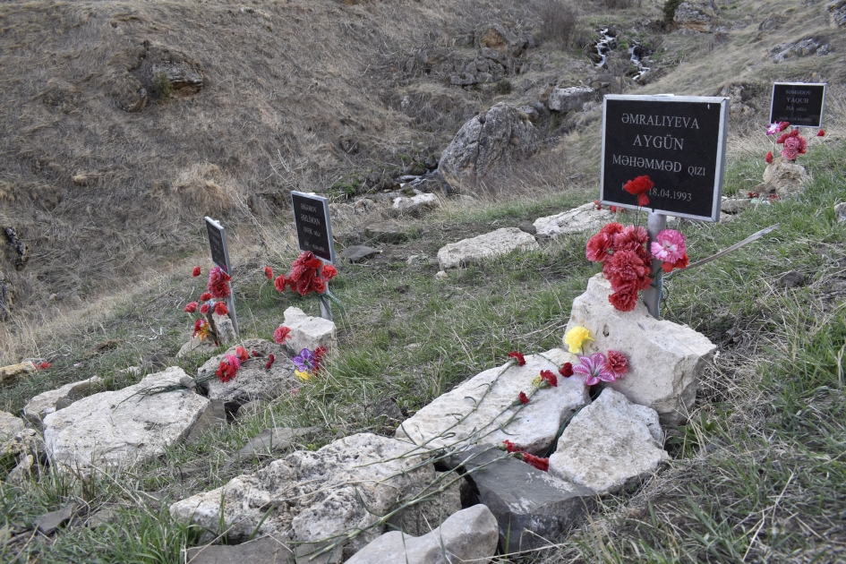 После освобождения Кяльбаджарского района от оккупации азербайджанская сторона обнаружила рядом с пещерами место захоронения тех, кто был зверски убит армянскими вооруженными силами.