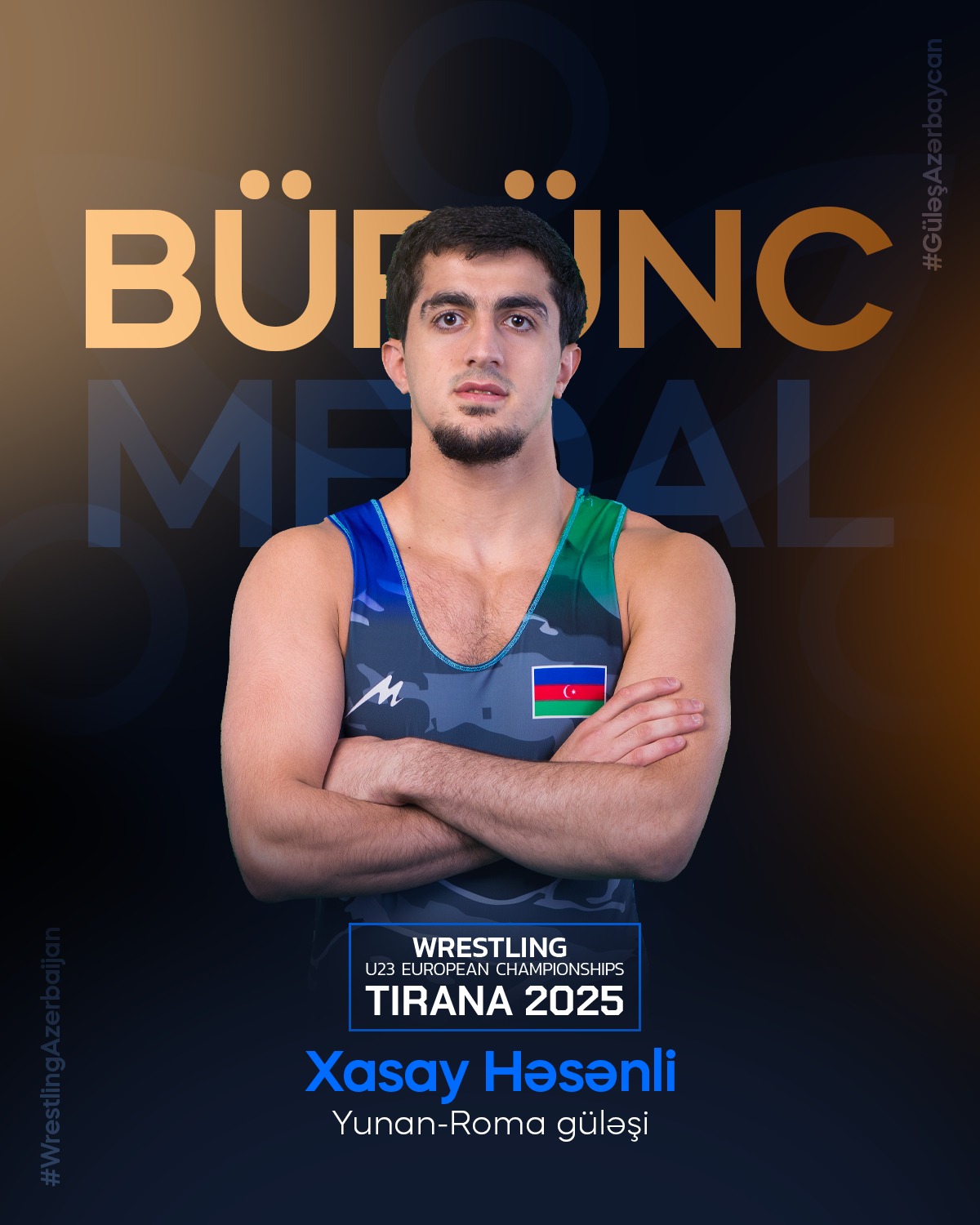БАКУ /Trend/ - Азербайджанский борец Хасай Гасанлы завоевал бронзовую медаль на чемпионате Европы U-23, проходящем в столице Албании Тиране.