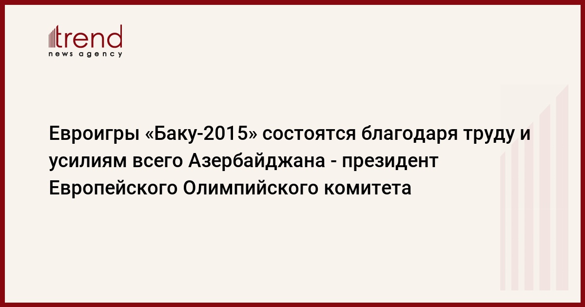 По его словам, "Баку-2015" состоится благодаря труду и усилиям всей вашей страны. "Работать с руководством Азербайджана доставило огромное удовольствие. Ваши профессионализм и внимание всегда нас впечатляли. Председатель Организационного комитета первых Европейских игр "Баку-2015", первая леди Мехрибан Алиева, лично участвуя в работе по подготовке к Играм, давала ценные указания и рекомендации, продемонстрировала полную приверженность работе. Я хотел бы выразить искреннюю признательность Европейского Олимпийского комитета Президенту Ильхаму Алиеву и первой леди. Профессиональный состав Организационного комитета и Операционного комитета первых Европейских игр "Баку- 2015" в течение 27 месяцев неустанно трудился для того, чтобы наши планы стали реальностью. То, что за столь короткий срок будет проделано такое количество работы, я не мог представить даже в самых смелых мечтах. На самом деле, весь бакинский состав еще до начала Игр установил мировой рекорд.