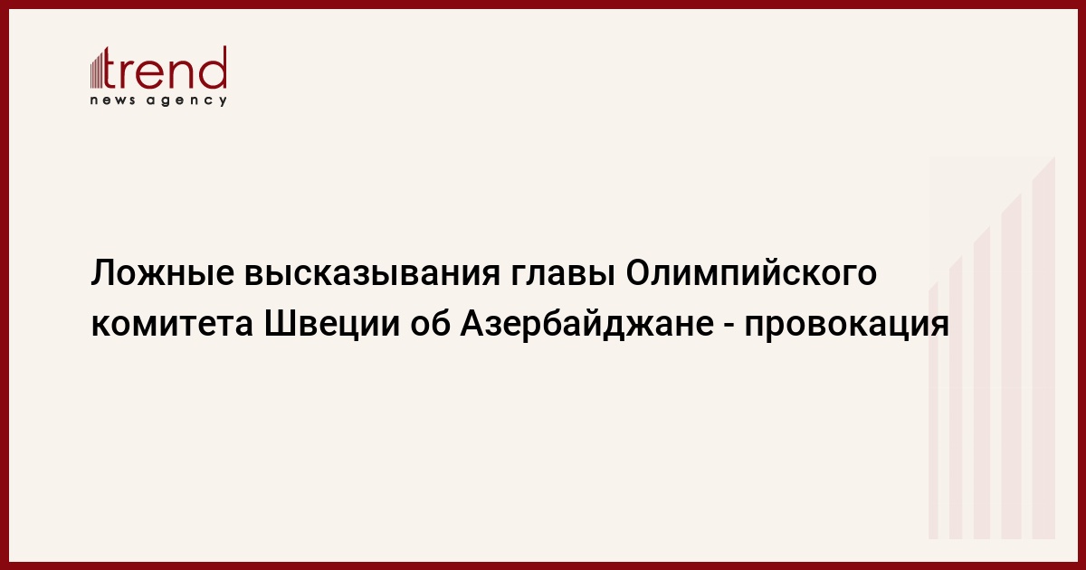 БАКУ /Trend/ - Высказывания президента Олимпийского комитета Швеции об Азербайджане - это провокация. Об этом говорится в сообщении Национального олимпийского комитета Азербайджана, распространенном во вторник.