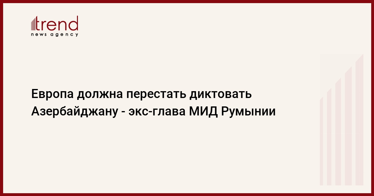 БАКУ /Trend/ - Европа должна перестать диктовать и указывать Азербайджану. Об этом сказал Trend в четверг экс-глава МИД Румынии, член Европарламента Адриан Северин.