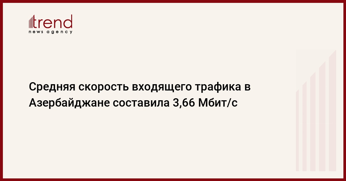 Средняя скорость входящего трафика в Азербайджане, согласно рейтингу NetIndex компании Ookla, составляет 3,66 Мбит/с, говорится в понедельник в сообщении компании.