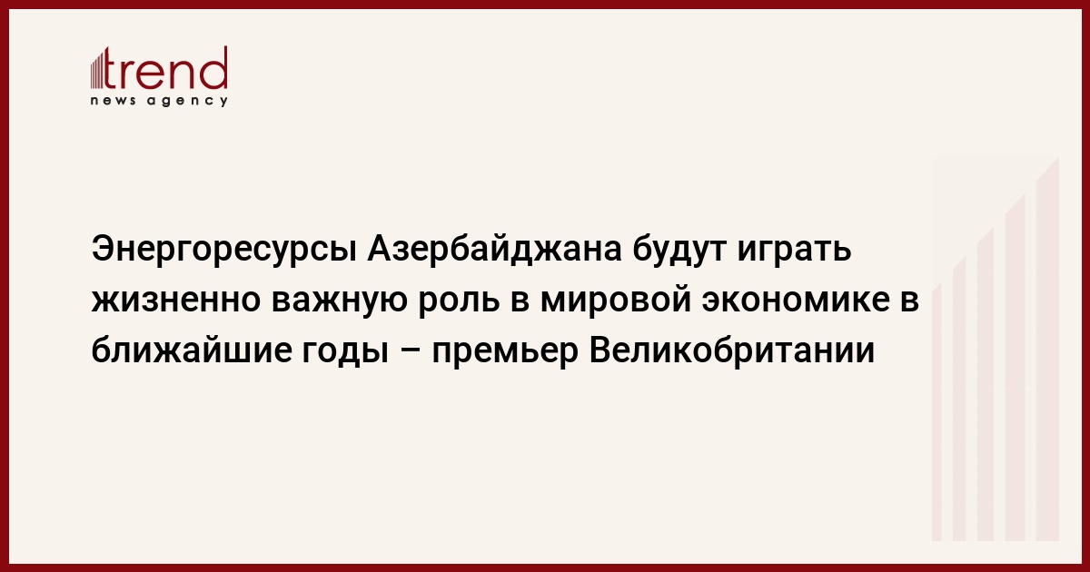 Энергоресурсы Азербайджана, безусловно, будут играть жизненно важную роль в европейской и мировой экономике в ближайшие годы, сказано в приветственном письме премьер-министра Великобритании Дэвида Кэмерона, зачитанного на открытии 20-й нефтегазовой выставки "Caspian Oil and Gas 2013", проходящей в Баку.