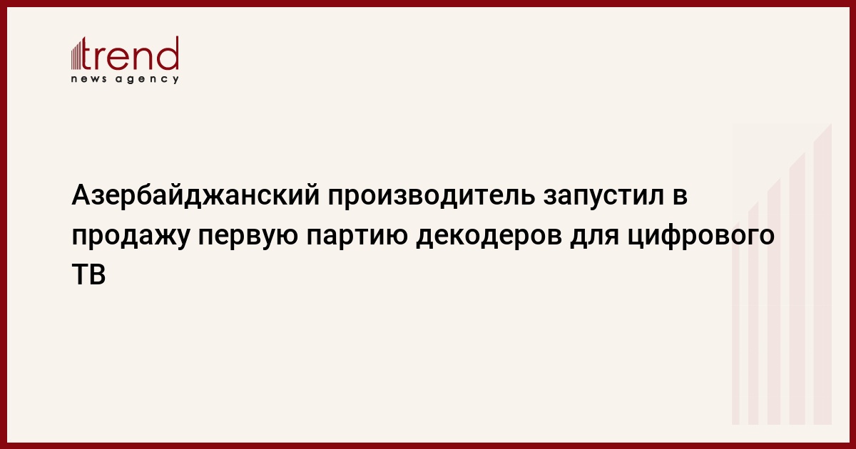 Завод PEYK министерства оборонной промышленности Азербайджана запустил в продажу первую партию DVB-T-декодеров для цифрового телевидения, сообщили Trend во вторник на заводе.