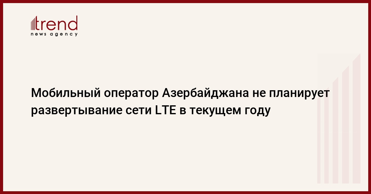 Оператор мобильной связи Азербайджана - ООО "Azerfon" (торговая марка Nar Mobile) - не планирует коммерческий запуск сети LTE (Long Term Evolution) в этом году, сказал журналистам генеральный директор ООО "Azerfon" Кент МакНили.