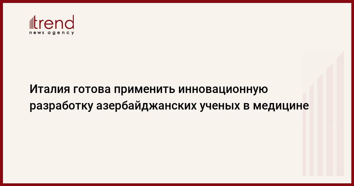 Италия выразила готовность к проведению экспериментов с применением технологии "Robust Noise Monitoring" Института кибернетики Национальной академии наук Азербайджана (НАНА) на клиническом уровне, сказал Trend в среду директор института Тельман Алиев.