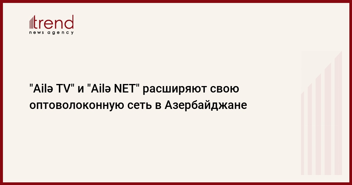 Компания ООО "Caspian Telecom" (собственник брендов "Ailə TV" и "Ailə NET"), предлагающая услуги оператора кабельного телевидения и интернета на базе передовой оптоволоконной технологии, проводит работы по расширению зоны покрытия и повышению качества предоставляемых услуг, говорится в понедельник в сообщении компании.