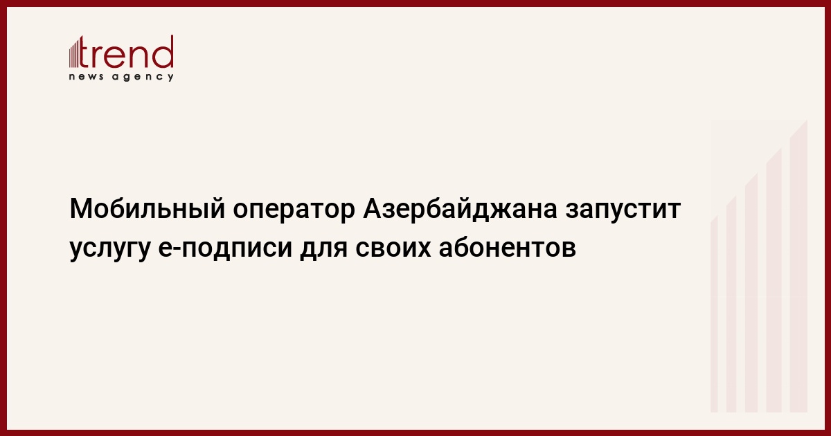 Оператор мобильной связи Азербайджана - ООО "Аzerfon" (торговая марка "NarMobile") - готовится к запуску услуги мобильной цифровой подписи "Asan Imza" для абонентов своей сети. Предоставление услуги планируется начать к концу мая. Об этом сообщил Trend источник на телекоммуникационном рынке Азербайджана.