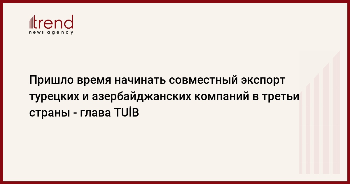 БАКУ /Trend/ - Пришло время начинать совместный экспорт турецких и азербайджанских компаний в третьи страны.