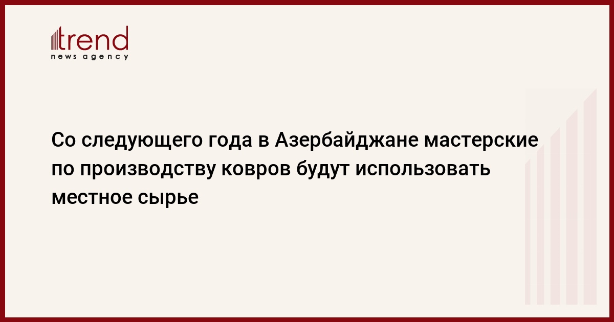 БАКУ /Trend/ - Со следующего года действующие в Азербайджане мастерские по производству ковров будут ткать ковры из местного сырья, сказал в четверг Trend глава пресс-службы ОАО «Азерхалча» Турал Сафаров.