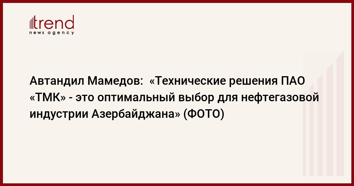 Эксклюзивное интервью с представителем в Азербайджане ПАО «ТМК»- ведущего производителя труб для нефтегазовой индустрии Автандилом Мамедовым.