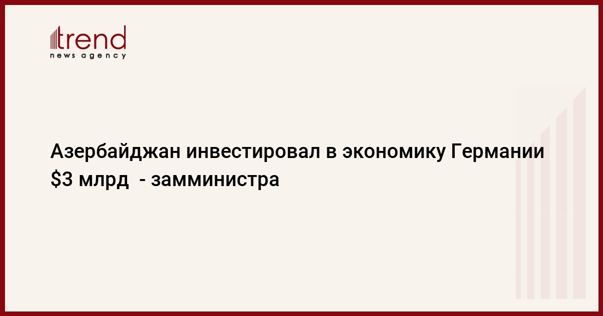 БАКУ/Trend - Объем инвестиций, вложенных Азербайджаном в экономику Германии, составил три миллиардов долларов США. Как передает в пятницу Trend, об этом заявил замминистра экономики Азербайджана Ниязи Сафаров на проходящем в Баку азербайджано-германском бизнес-форуме.