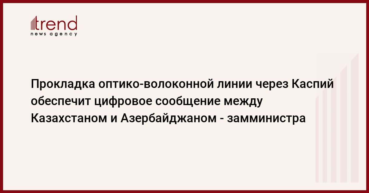 БАКУ/Trend/ - Реализация проекта прокладки оптико-волоконной магистральной кабельной линии по дну Каспийского моря между Азербайджаном и Казахстаном сыграет важную роль в создании цифрового сообщения между двумя странами.