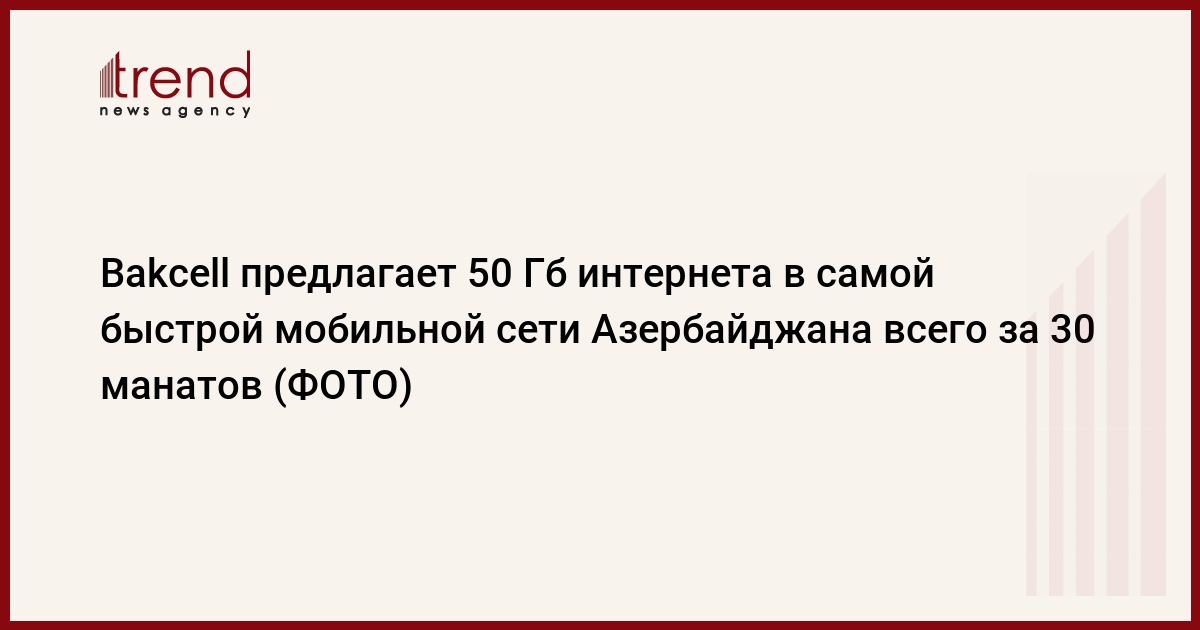 БАКУ/Trend/ - Чтобы удовлетворить растущий спрос абонентов на большие объемы данных, компания Bakcell представила новый пакет интернета размером в 50 Гб, который предлагается всего за 30 AZN.