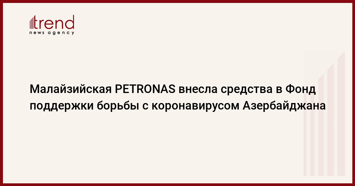БАКУ /Trend/ - Малайзийская компания PETRONAS внесла 10 тысяч манатов (5 882 долларов) в Фонд поддержки борьбы с коронавирусом Азербайджана, сказал Trend посол Малайзии в Азербайджане Юбазлан Бин Юсоф.