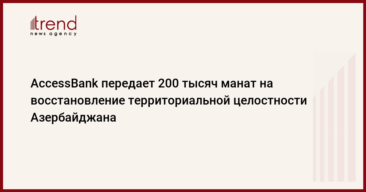 Учитывая сложившуюся ситуацию, AccessBank на данном этапе выделил 200 тысяч манат в помощь потерпевшим в сражениях за целостность родины. Из этих средств будет осуществлено пожертвование госпиталям и приобретение медикаментов для оказания первой помощи раненым на фронте и прилегающих к зоне боевых действий территориях. Также часть средств будет направлена на закупку товаров для удовлетворения первичных потребностей военнослужащих.