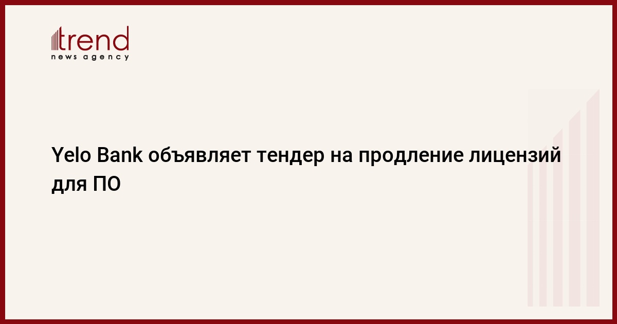 Yelo Bank объявляет тендер на продление лицензий для программного обеспечения по следующим лотам: