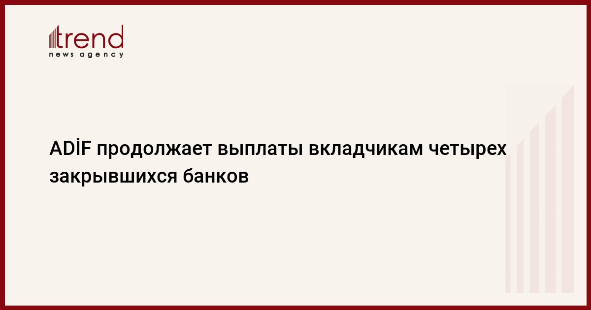 БАКУ /Trend/ - Фонд страхования вкладов Азербайджана (ADİF) выплатил 549,75 миллионов манатов компенсации 23,538 тысячам вкладчиков закрывшихся “Аta Bank”, “Amrah Bank”, “AG Bank” и “NBC Bank”, сообщает Trend со ссылкой на ADİF.