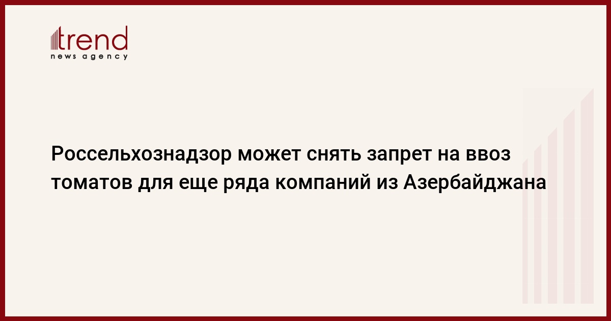 "На основании представленной Агентством по пищевой безопасности информации и данных гарантий, Россельхознадзор разрешил поставки в Россию томатов с 17 азербайджанских предприятий. В настоящее время ведомством рассматривается возможность отмены ограничений в отношении еще ряда компаний, расположенных в районах, где в 2020 году не выявлялись карантинные объекты", - говорится в сообщении.