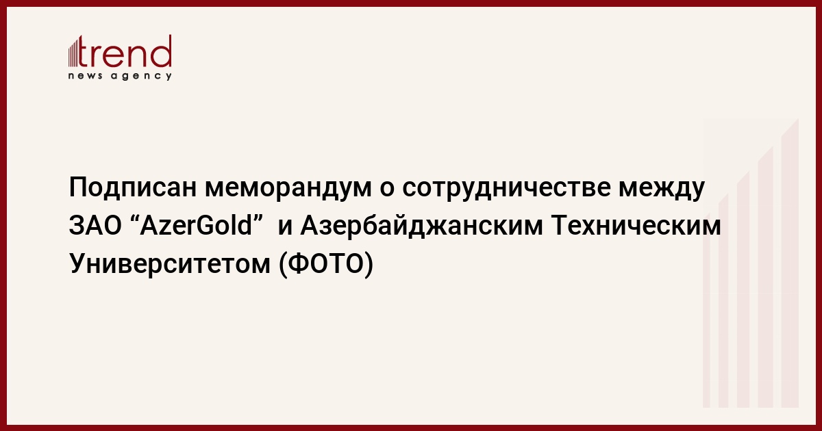 Документ подписали заместитель председателя правления ЗАО “AzerGold” Хайям Фарзалиев и ректор АзТУ Вилаят Велиев. Меморандум предусматривает совместную разработку концепций формирования кадрового потенциала в соответствующей области.