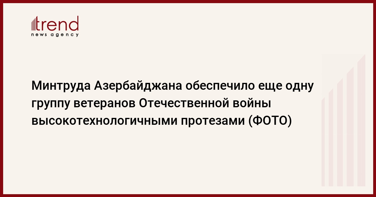 БАКУ / Trend / - Министерство труда и соцзащиты населения Азербайджана обеспечило еще одну группу ветеранов 44-дневной Отечественной войны высокотехнологичными протезами.