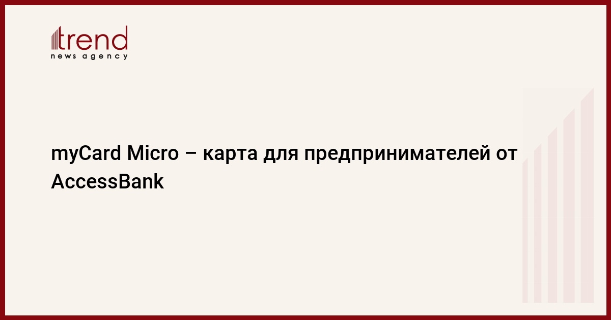 Бизнес-кредитная карта AccessBank, специально разработанная для предпринимателей – myCard Mikro, позволяет клиенту получить кредитный лимит без переоформления документов (подписание кредитного договора, договора поручительства). Воспользоваться услугами myCard Micro могут те, кто занимался предпринимательской деятельностью в течение последних 12 месяцев.