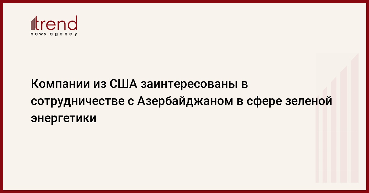 «Еще в Вашингтоне я стал свидетелем большого энтузиазма американского частного сектора. Это было подтверждено и данная тема была развита здесь, в Баку, где американские компании имели возможность встретиться с представителями некоторых азербайджанских компаний и правительства Азербайджана в области зеленой энергии. Эти переговоры показали еще больший энтузиазм для партнерства с Азербайджаном в области зеленой энергии»,- сказал он.