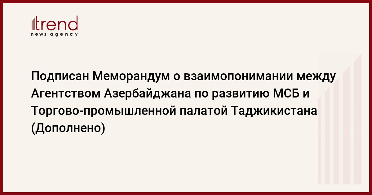 Документ подписали председатель правления Агентства Азербайджана по развитию МСБ Орхан Мамедов и председатель Торгово-промышленной палаты Таджикистана Джамшед Джумахонзода.