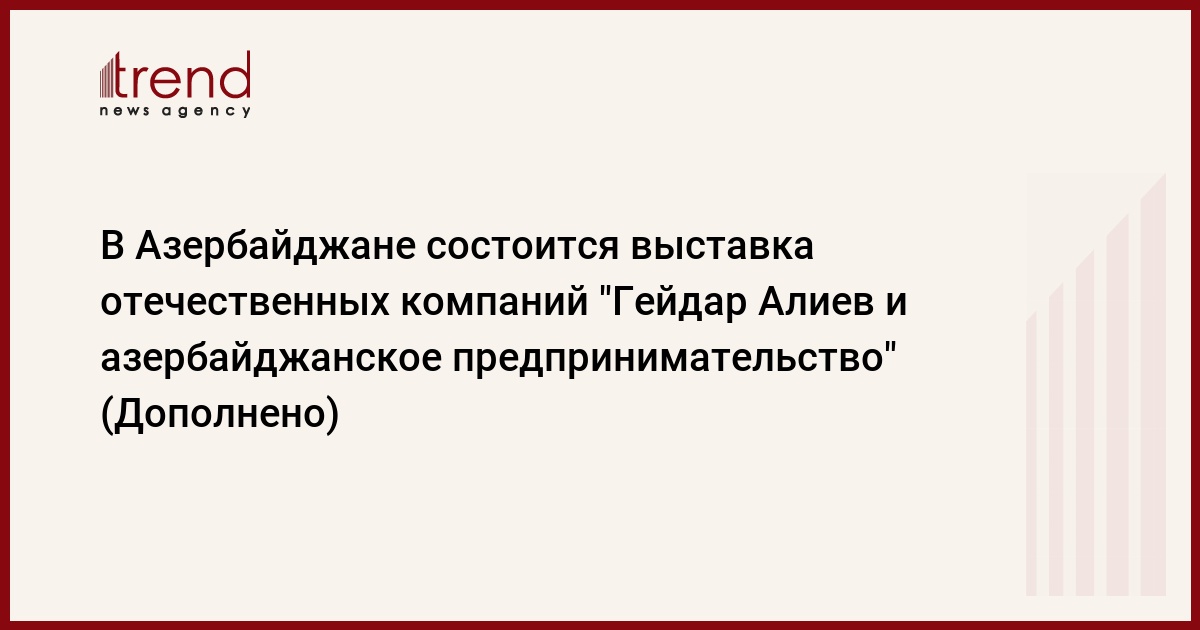 БАКУ /Trend/ - На выставке отечественных компаний, посвященной 100-летию великого лидера, представят свою продукцию и услуги более 150 компаний, работающих в сфере промышленности, сельского хозяйства, пищевой индустрии, ИКТ, образования, строительства, логистики, текстильной и других сферах.