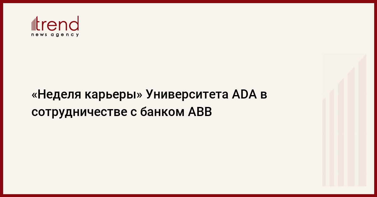БАКУ/Trend/ - B Университете ADA cтартовал очередной проект «Неделя карьеры», в котором банк АВВ выступил в качестве одного из партнеров. Основной целью данного проекта, который продлится до 19 апреля, является то что студенты и выпускники получат возможность ознакомиться с рынком труда и карьерными возможностями в нашей стране.