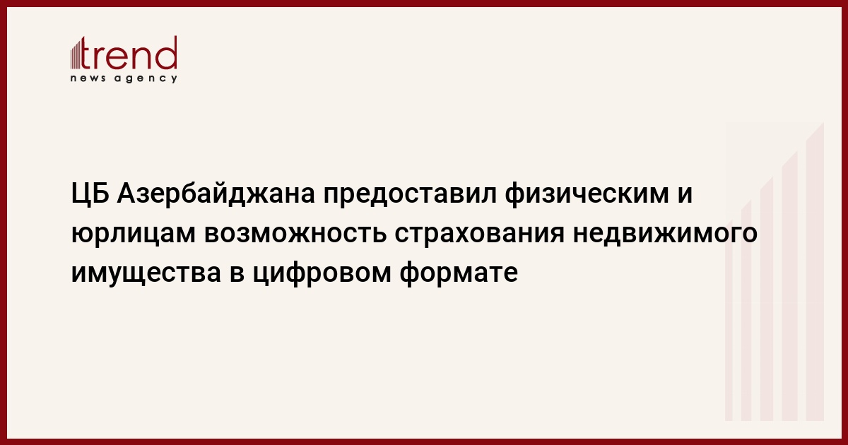БАКУ /Trend/ - Центральный банк Азербайджана предоставил физическим и юридическим лицам возможность страхования недвижимого имущества в цифровом формате.
