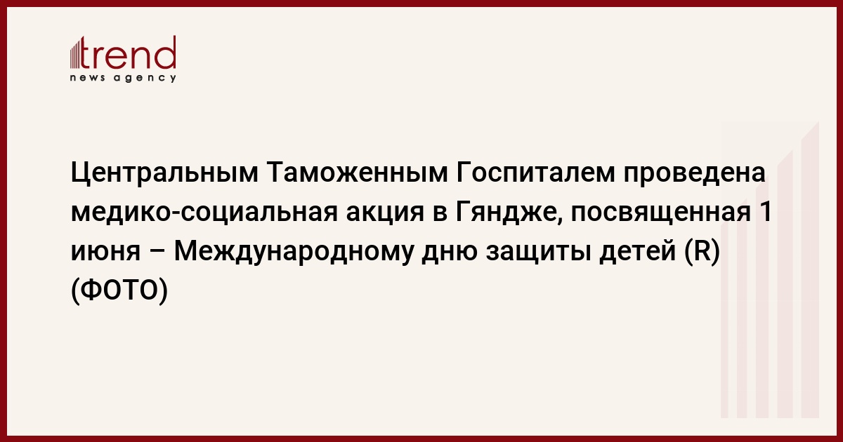 Заместитель Главы Исполнительной Власти города Гянджи Адиль Тагиев выразил благодарность председателю Государственного Таможенного Комитета Азербайджанской Республики, генерал-лейтенанту таможенной службы Шахину Багирову, начальнику Управления Медицинской Службы Государственного Таможенного Комитета, к.м.н., заслуженному врачу, генерал-майору медицинской службы Джейхуну Мамедову, врачам Центрального Таможенного Госпиталя за проведение данной медико-социальной акции. В своем выступлении он поздравил детей с 1 июня – Международным днем защиты детей и отметил, что под руководством нашего Президента Ильхама Алиева этих детей впереди ожидают еще более прекрасные дни. Он сказал: «Вы знаете, что во всем мире дети считаются будущим общества. Сегодняшнее мероприятие очень важно и с той точки зрения, что если наше будущее растет здоровым, если наше будущее будет полностью готово к свершениям, то Азербайджан ждут великие дни».
