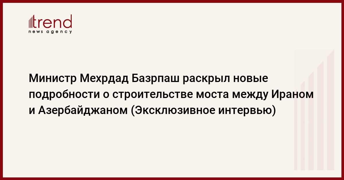Об этом в эксклюзивном интервью Trend сказал министр дорог и городского развития Ирана, сопредседатель совместной ирано-азербайджанской экономической комиссии Мехрдад Базрпаш.