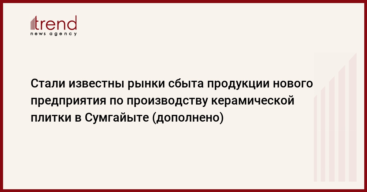 СУМГАЙЫТ /Trend/ - Продукция предприятия по производству керамической плитки ООО "Azərbaycan Vanhong Ceramics Co" в Сумгайыте будет экспортироваться в Россию, Казахстан, Узбекиcтан и Грузию.