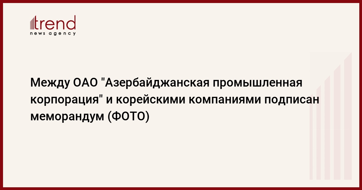 БАКУ /Trend/ - Между ОАО "Азербайджанская промышленная корпорация" и корейскими компаниями подписан меморандум, передает Trend.