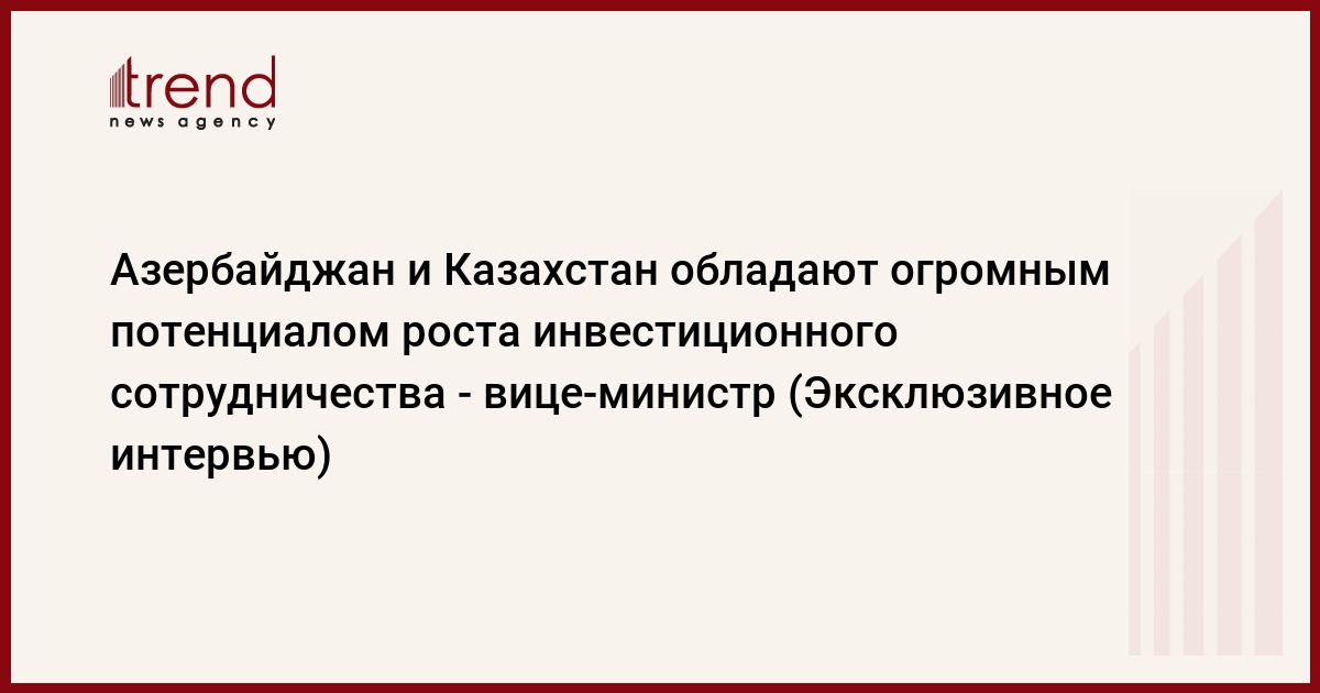 Об этом сказал в эксклюзивном интервью Trend вице-министр национальной экономики Казахстана Бауыржан Кудайбергенов.
