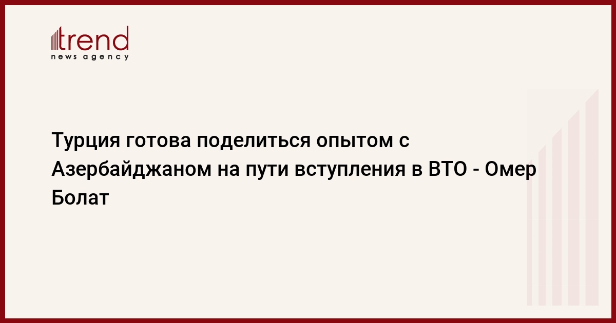 БАКУ /Trend/ - Турция готова поделиться своим опытом с Азербайджаном на пути вступления во Всемирную торговую организацию (ВТО).