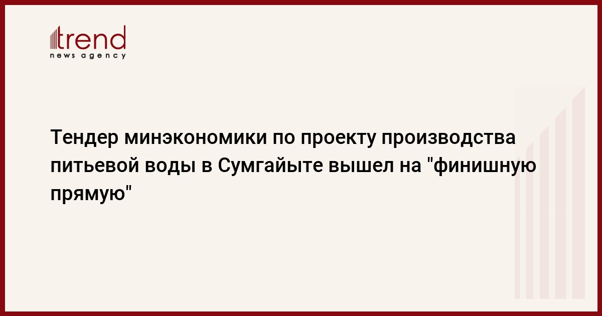 "Улучшение использования водных ресурсов в Азербайджане, увеличение снабжения населения питьевой водой, внедрение новых технологий в эту сферу имеют важное значение в социально-экономическом развитии страны. В целях реализации постановления главы государства о реализации пилотного проекта в области производства питьевой воды путем опреснения морской воды, в минэкономики действует Рабочая группа в составе представителей профильных ведомств, консультантов, и уже прошел первый этап конкурсного отбора для осуществления этого важнейшего проекта, требующего международного опыта в технической, финансовой и юридической сферах", — указано в пресс-релизе.