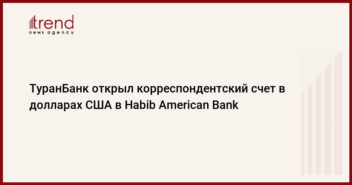И так, в рамках сотрудничества TуранБанк откроет корреспондентский счет в долларах США в HAB Bank, который считается одним из ведущих банков в сфере международных платежей и расчетов Соединенных Штатов Америки (США), и предоставит своим клиентам более удобные и быстрые операции с иностранной валютой.