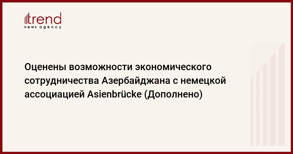 БАКУ /Trend/ - Оценены возможности экономического сотрудничества Азербайджана с немецкой ассоциацией Asienbrücke.