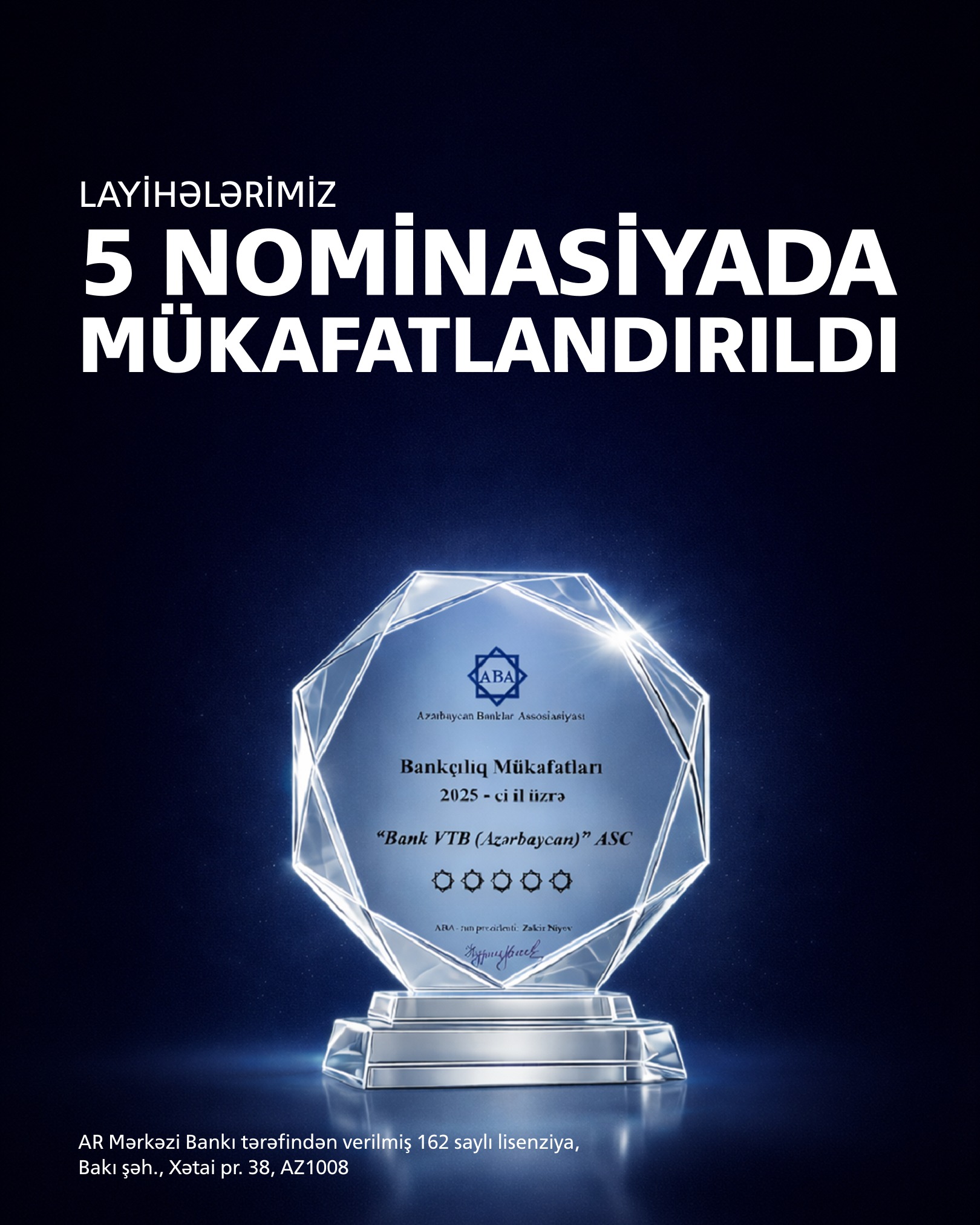 Премия «Bankçılıq mükafatları» ежегодно вручается Ассоциацией банков Азербайджана на основе анализа результатов работы финансовых институтов за предыдущий год. Награда служит независимым отраслевым индикатором и учитывается при формировании публичных рейтингов АБА, на которые ориентируются как розничные клиенты, так и корпоративные заказчики при выборе банка-партнера.