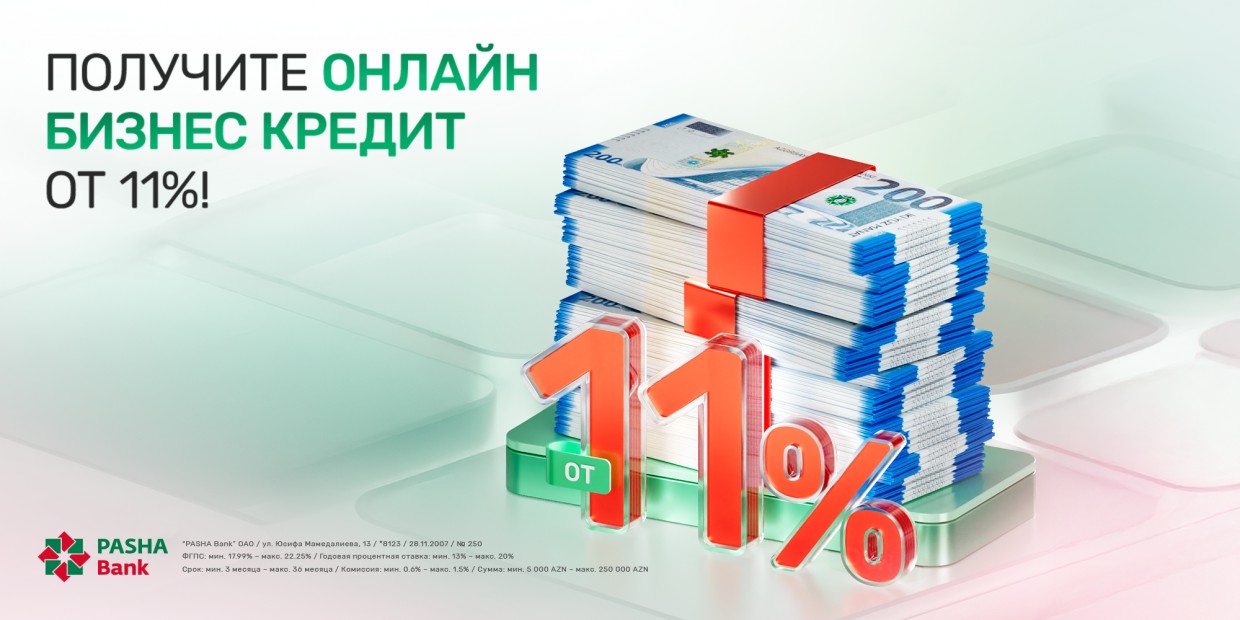 В рамках кампании предприниматели могут получить беззалоговые бизнес-кредиты до 250 000 AZN полностью онлайн по ставке от 11% годовых вместо прежних 13%.