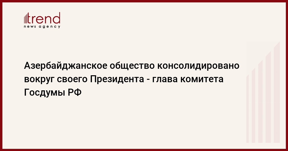 МОСКВА /Trend/ - Азербайджанское общество консолидировано вокруг своего Президента, той политики, которую он проводит. Об этом сказал во вторник на пресс-конференции глава комитета Госдумы по делам СНГ, евразийской интеграции и связям с соотечественниками Леонид Слуцкий.